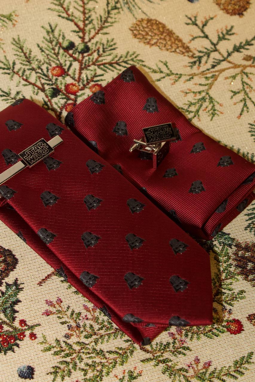 Incluye: corbata, clip, pañuelo y par mancuernillas. Microbordada